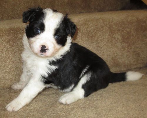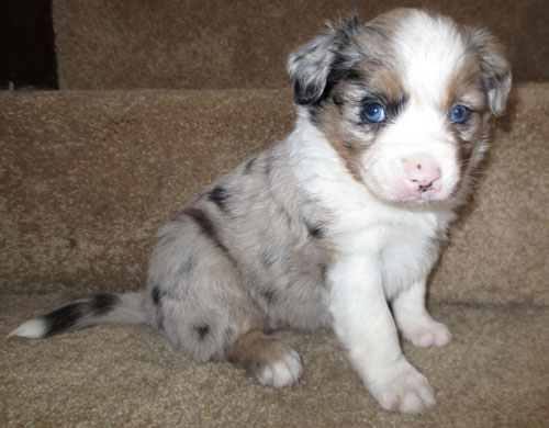 *SOLD* Puppy #2: FEMALE, Blue Merle, possible two blue eyes, amazing symmetrical markings, wonderful disposition, smart and bright,