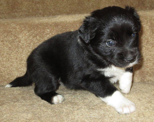 **SOLD** Puppy #4: FEMALE, Black and white - very unusual markings, almost all black with white trim. An absolutely gorgeous dog that is very happy to see people and is exhibiting lots of intelligence.