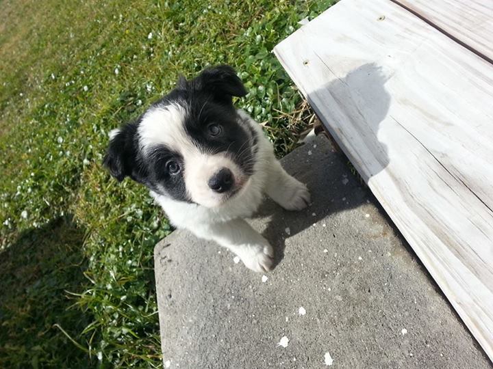 "Snowball" is an incredibly smart, precocious female black/white mini aussie, with a bit of "pattern white" on her face, but is 100% healthy. She is also the "runt" of the litter and may end up being "toy"-sized. ** SOLD **