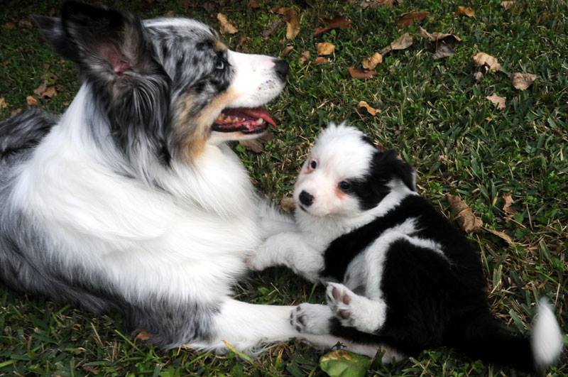 Our dogs are fully-registerable with all the major registries, but are by default, AKC Australian Shepherds. These dogs are compatible with a new up and coming breed recognized by the AKC as "Mini-American Shepherds." You have the maximum number of options with these amazing animals. They make wonderful pets, or could be used in shows or obedience trials. Our mini-Aussies are particularly acclimated towards pet life. We do not dock tails - which is also rare among Aussie breeders. We do not feel tail docking is humane or necessary.