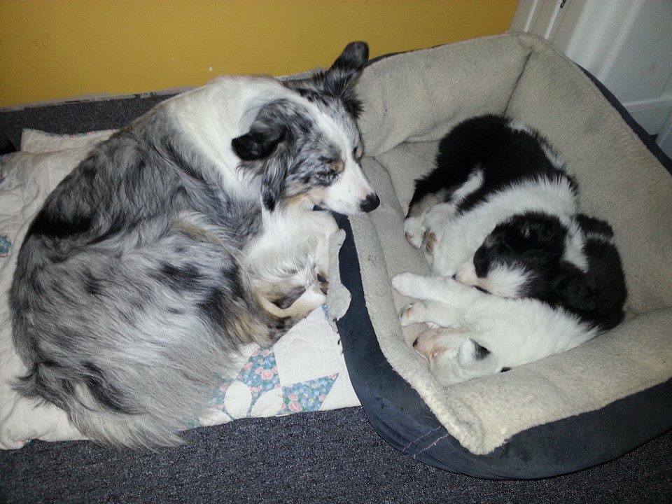 Daddy, "Voltage" watches over "Oreo" and "Snowball"...